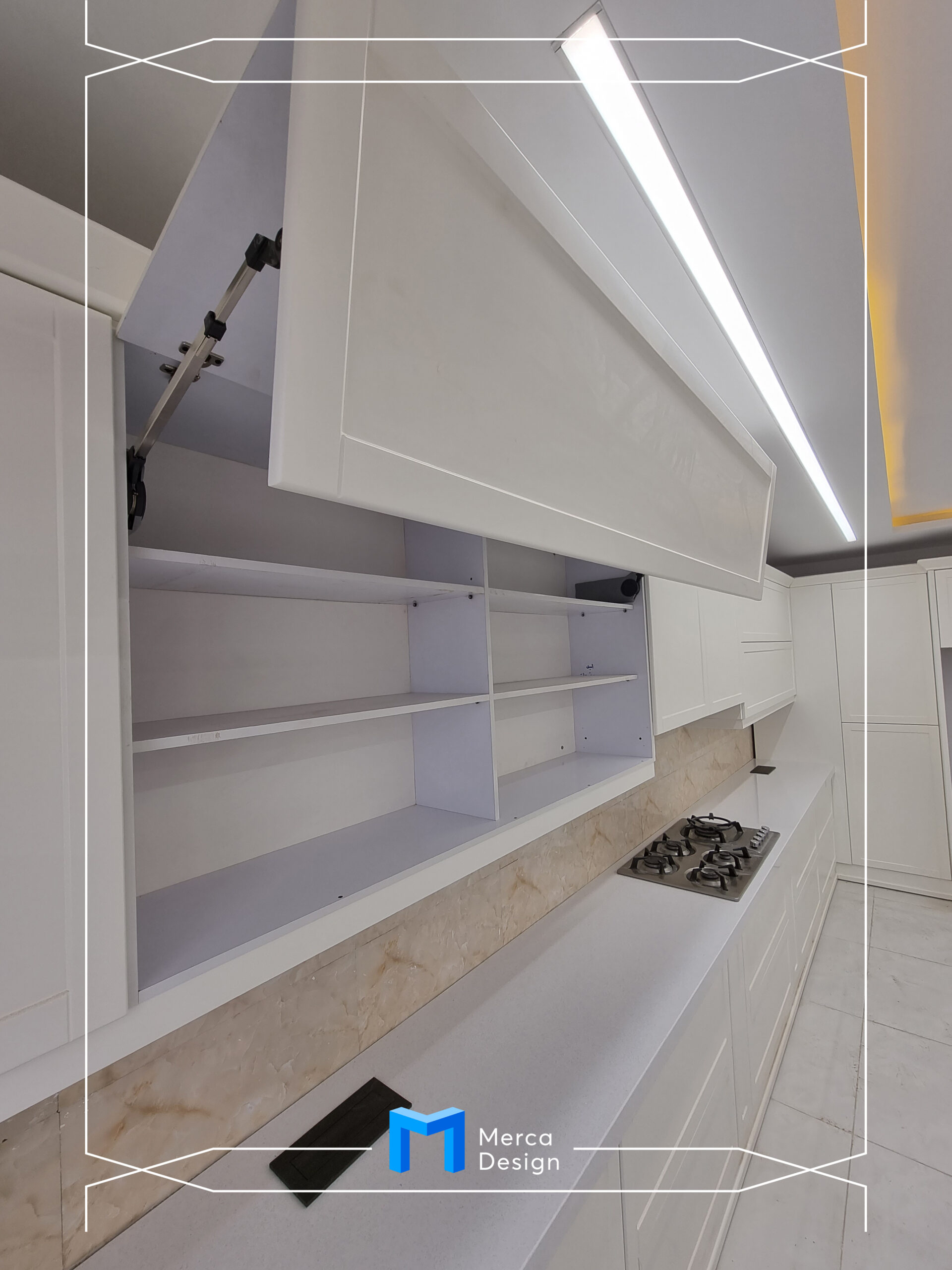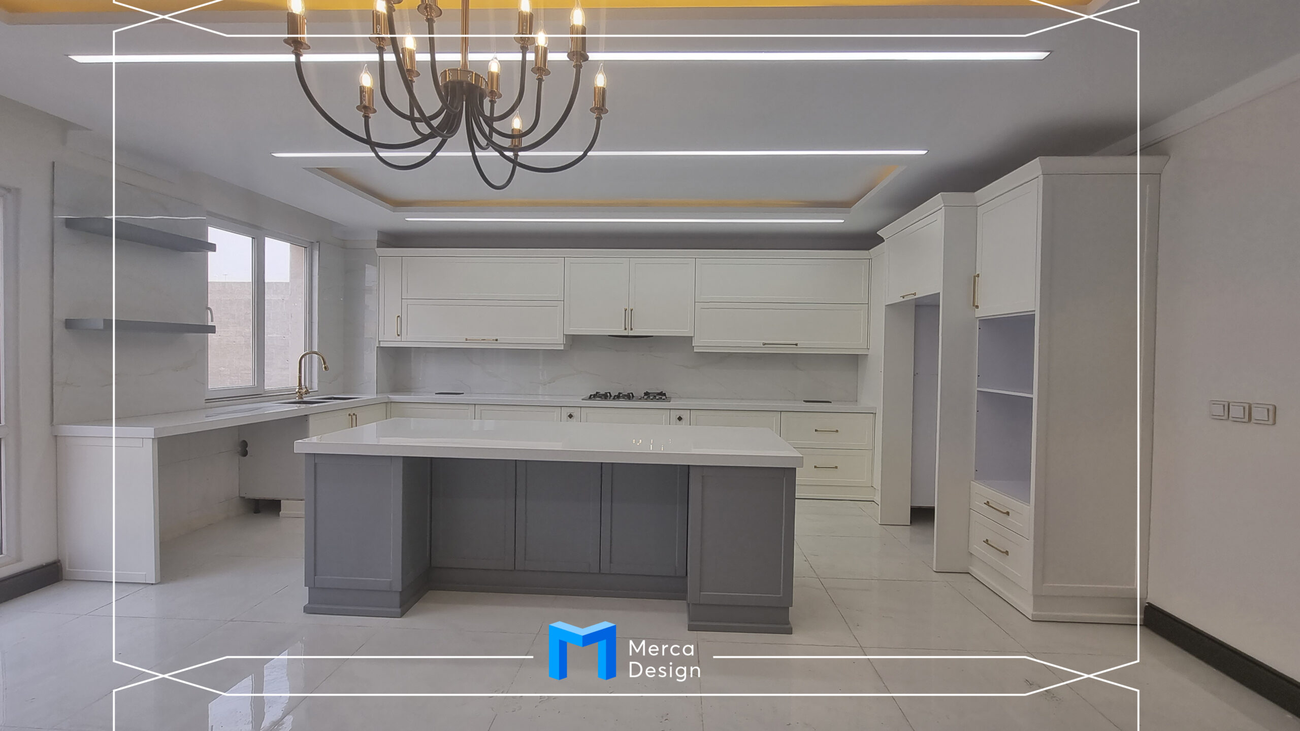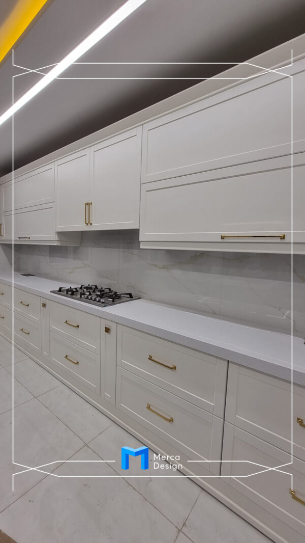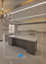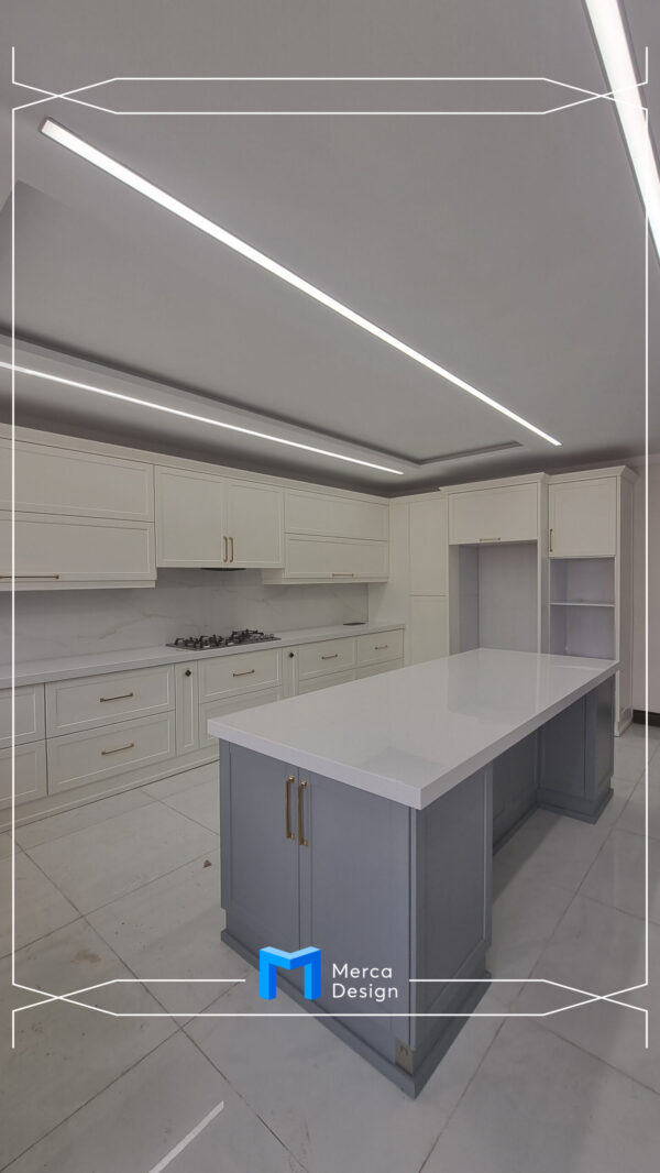 جنس بدنه ها ام دی اف سفید و درب ها و نما رنگ کرم و جزیره به رنگ طوسی و رنگ پلی اورتان می باشد.